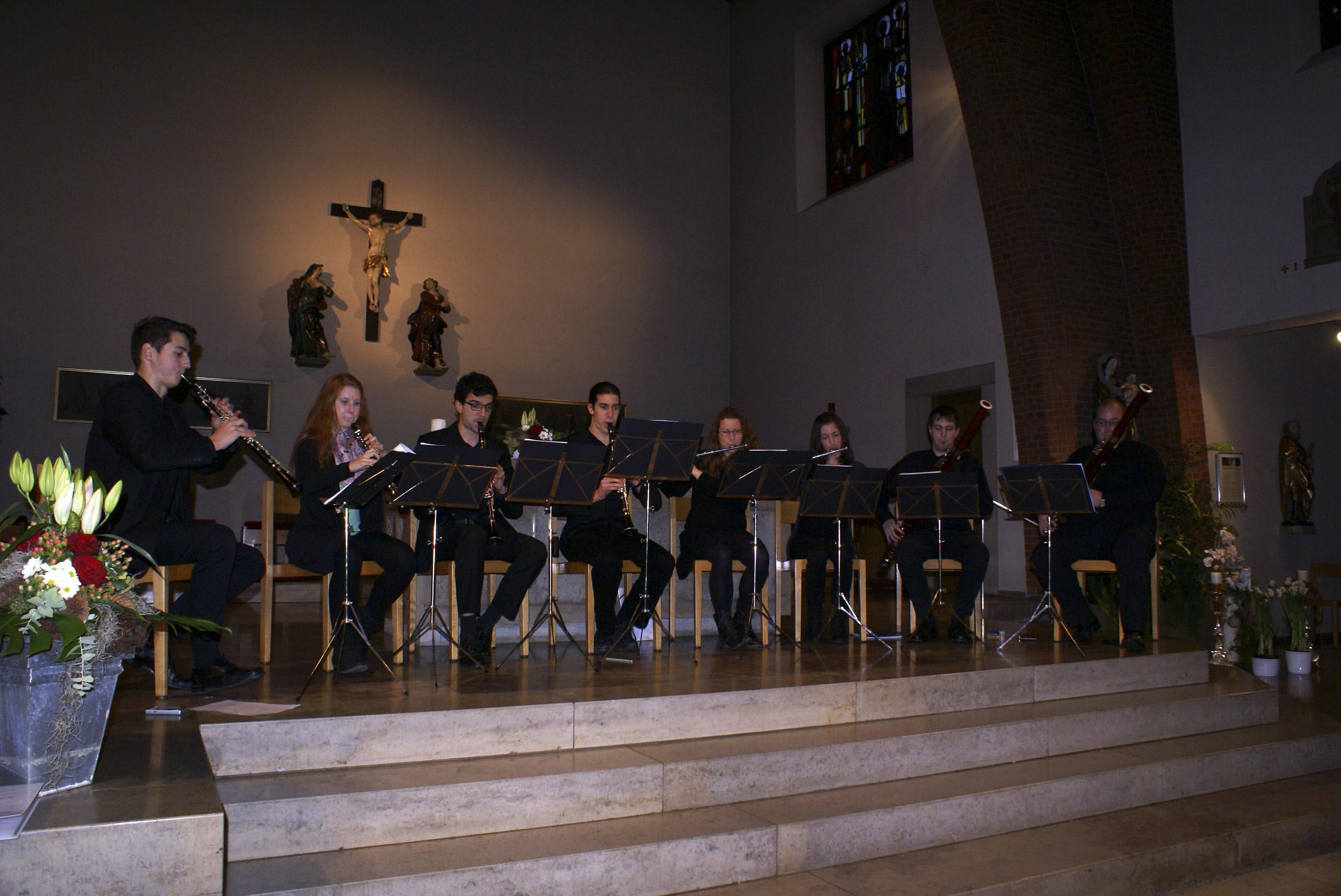 24. November Konzert in der Kirche: Sonntag, um 17 Uhr eröffneten wir unser Liederkonzert in der Kirche von Büsserach. Unter dem Motto „My Heimet“ sangen wir in unseren vier Landesprachen, also in Deutsch, Französisch, Italienisch und Rätoromanisch. Die Kirche füllte sich erfreulich. Als Gast war bei uns das Bläseroktett Juventus Musica Basel. Unter der Leitung von Raphael Ilg spielte das Ensemble von Ludwig van Beethoven in Es-Dur, op. 103. Zwischen unseren zwei Liederblöcken mit ausschliesslich Liedern mit „Schweizercharakter“ waren diese jungen Musikanten eine Auflockerung.