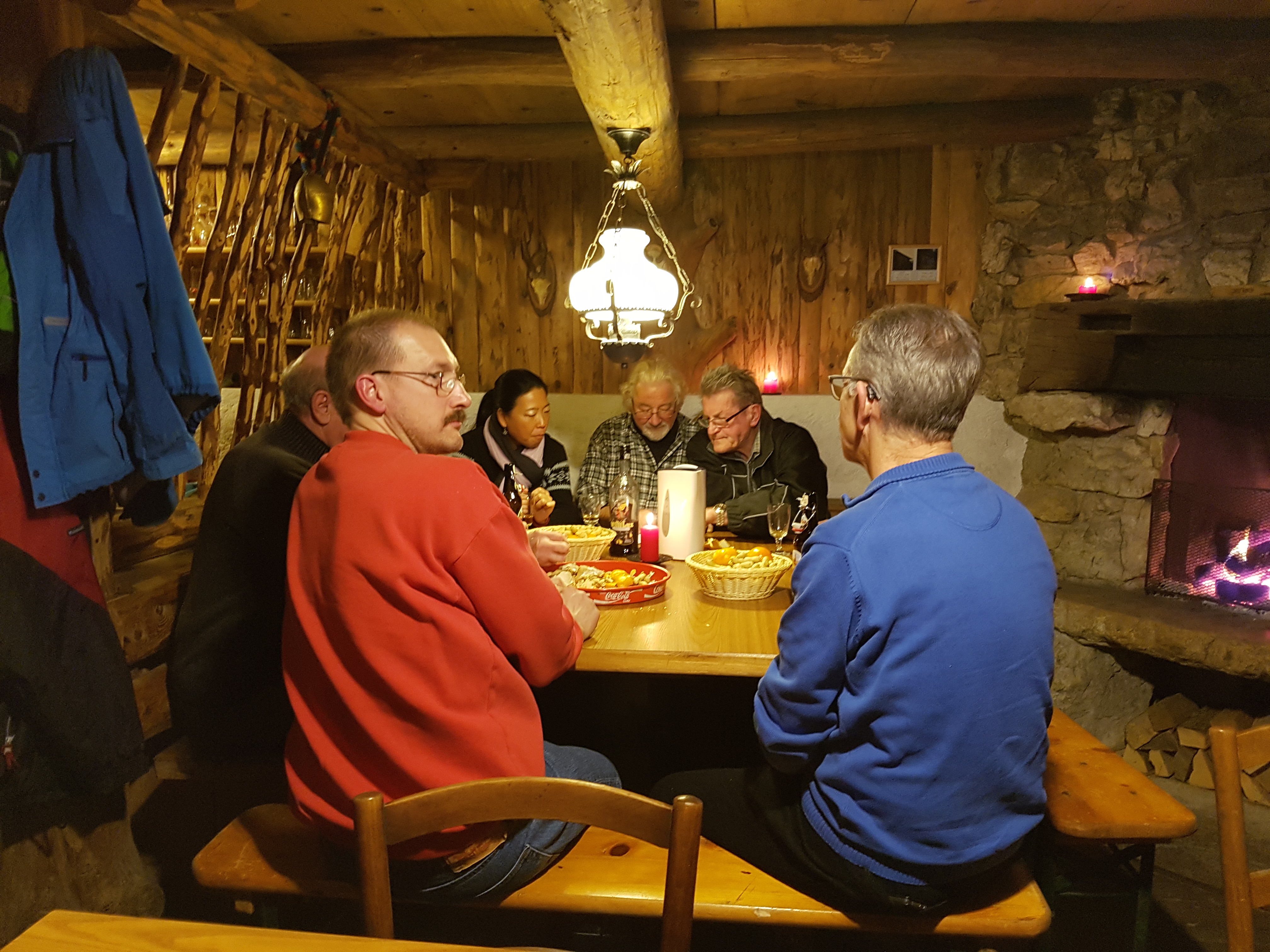 17. Dezember 2016: Weihnachtsfeier: In unserem Stammlokal, Restaurant Traube, wurden wir von Vreni und Ueli Zürcher und deren Team mit einem Fondue chinoise verwöhnt. Viele hervorragende Fleischsorten und Beilagen haben sie liebevoll und verführerisch aufgetischt. Abgerundet wurde das feine z‘Nacht mit einem herrlichen Zwetschgensorbet. Unserer Fahnengotte und unseren treuen Frauen konnten wir zwischen den einzelnen Gängen ein paar Lieder präsentieren. Martin Burget wusste die Gesellschaft dann noch mit einem lustigen Vortrag über die Frauen mit ihren Problemen im Alter zu erheitern.