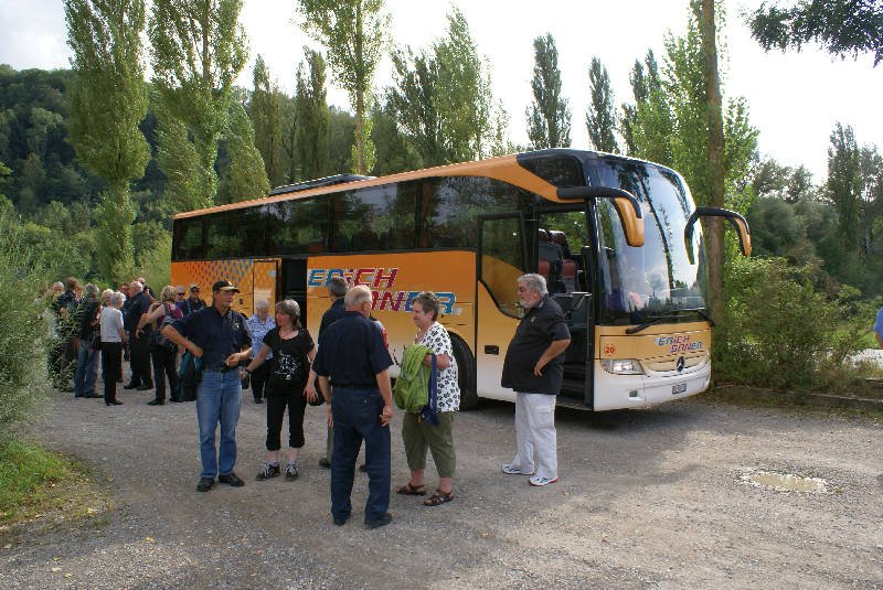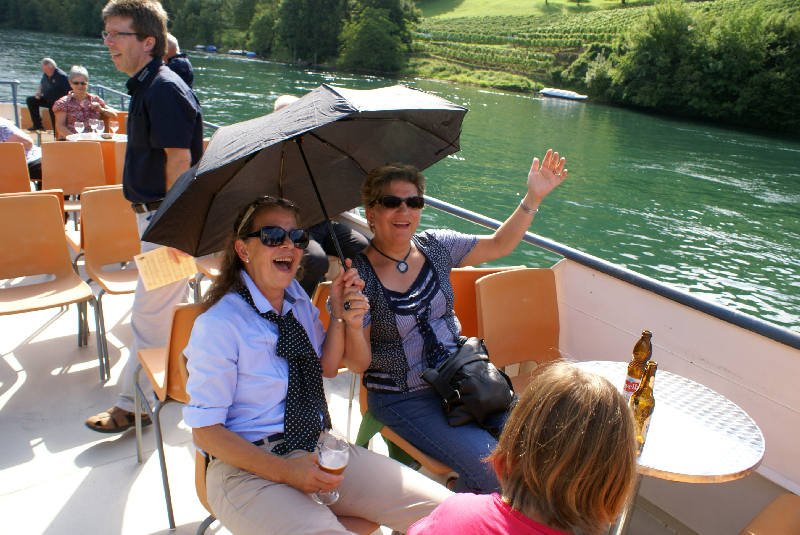 Nach einem feinen Mittagessen und einigen Gläschen Hallauerwein ging’s mit einer kurzen Carfahrt nach Eglisau und bestiegen dort das Schiff „Rhenus“ und gondelten während einer Stunde rheinaufwärts bis nach Rüdlingen. Nach kurzem Spaziergang zum Car,Weiterfahrt über Flaach - durch Dörfer mit wunderschönen Riegelhäusern - Rorbas - Kaiserstuhl - Siglistorf - Baden – Bözberg, um 18 Uhr Zobighalt im Restaurant „Vierlinden“ auf den Passübergang Bözberg. Um 19.15 Uhr war die Abfahrt angesagt, und genau um diese Zeit begann es leicht zu regnen. Ankunft in Büsserach 20.30 Uhr.