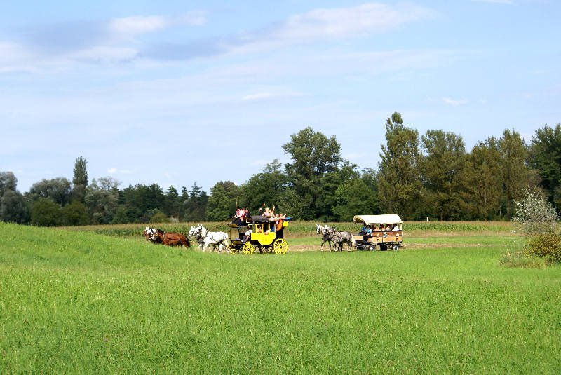 Um 10.15 Uhr sind mit zwei Pferdekutschen von Kellers losgefahren, Jeder Wagen ein Dreispänner. Die gemütliche Fahrt durch die Klettgauer Reblandschaft dauerte 5/4 Stunden und wir durften vieles über die Gegend, die Landwirtschaft, das Gewerbe und vorwiegend über den Weinbau erfahren. In der Winzerstube wieder angelangt, durstig vom Erzählen, wurden uns zum Apéro verschiedene Weine kredenzt.