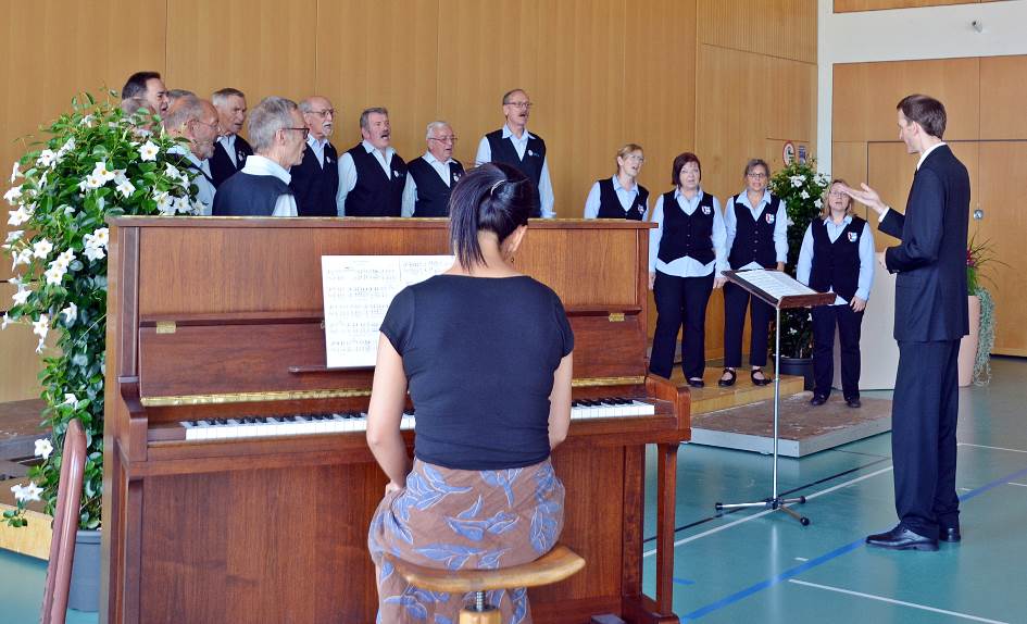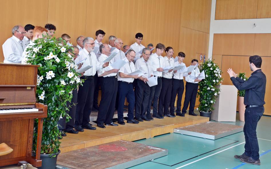 Landammann Remo Ankli zeigte sich in seiner Ansprache sehr froh, dass in unserem Gebiet gemeinsames Singen, Musizieren, sportliches Spiel und Turnen noch immer einen wichtigen Platz einnähmen, das sei heute immer wichtiger: „Der einzelne Mensch ist im Zusammenleben mit iPad und Co. zwar mit der ganzen Welt vernetzt, scheint aber persönlich immer einsamer zu werden.“ Auch Verbandspräsident Bruno Rentsch bekundete Freude am Singen und am Chorleben, dessen gesellschaftliche Bedeutung nicht zu unterschätzen sei. Freude bereite ihm auch der MC Witterswil als Vorbild, weil er als kleiner Verein nicht aufstecke. Sein besonderer Dank galt schliesslich den 24 geehrten Sängerinnen und Sängern für ihr Chorjubiläum und den Organisatoren des Anlasses.